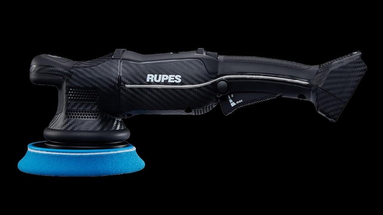 iBrid random orbital polisher, 15mm throw, cordless, variable speed, ergonomic design, high-efficiency motor, reduced vibration, lightweight, versatile for all surfaces.